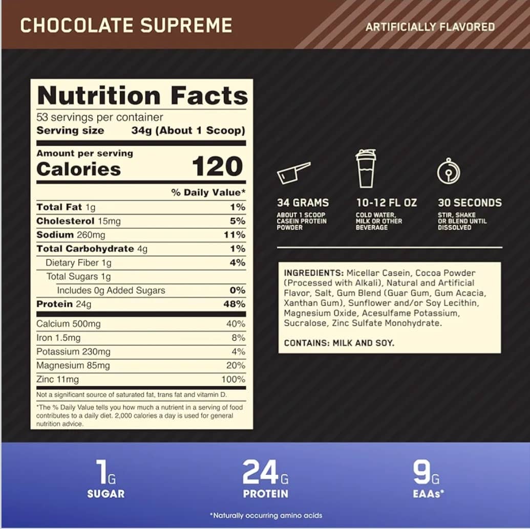 24 گرم کازئین خالص 9 گرم ایی ای ای در هر پیمانه : ریکاوری عضلات در طول شب و حجم عضلات با پروتئین بیشتر