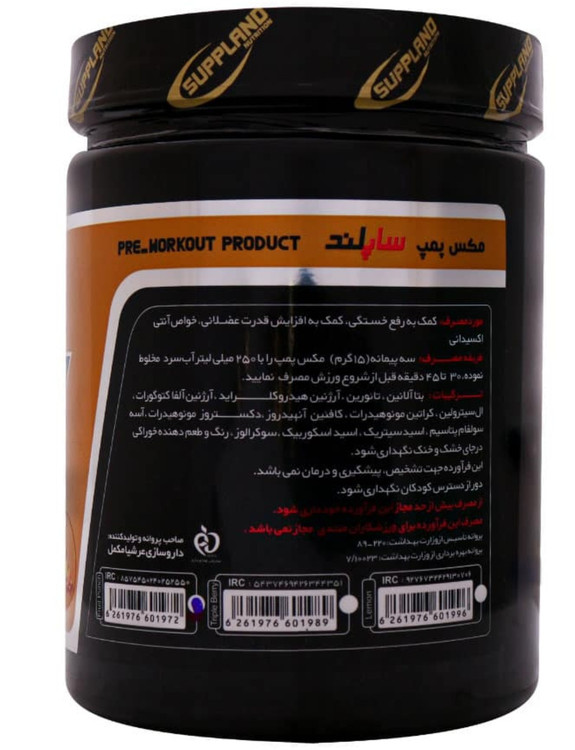 مکس پمپ مکمل قبل تمرین ۶۰۰ گرمی شرکت ساپلند طعم دار ( چند میوه ) دارای مجوز از سازمان غذا و دارو برچسب اصالت کالا